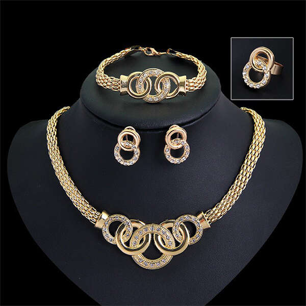 Viss, kas sievietei nepieciešams krāšņam izskatam - mūsdienīgs komplekts ar greznu kaklarotu, rokassprādzi, gredzenu un auskariem!