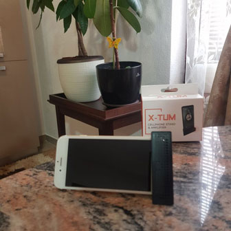 X-Tum pastiprinātājs ir ļoti vienkārši lietojams. Vienkārši ievietojiet mobilo tālruni pastiprinātāja slotā, pārliecinoties, ka mobilā tālruņa skaļrunis ir novietots apakšā. Pēc tam atskaņojiet mūziku un izbaudiet to jebkurā laikā un vietā.